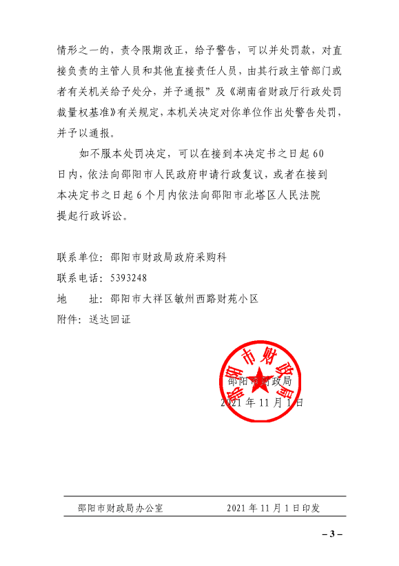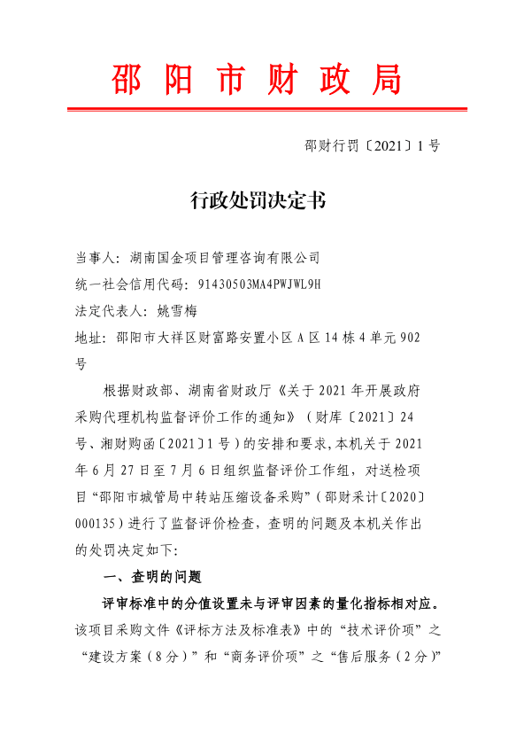 行政处罚决定书(邵财行罚【2021】1号)